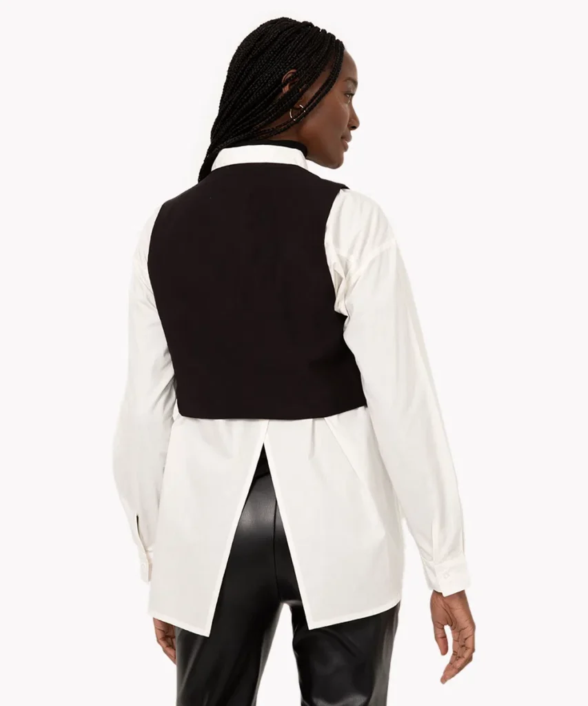 Experimente usar um colete de alfaiataria como uma camada adicional sobre vestidos, saias ou macacões. Essa sobreposição cria um visual moderno. Brinque com diferentes comprimentos e texturas para adicionar profundidade ao seu look.